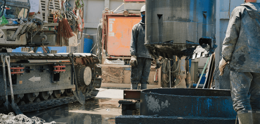 ドリリングバケットを用いて地盤を掘削し土砂を地上に排出し、掘削後に鉄筋カゴを建て込みコンクリートを打ち込む工法です。